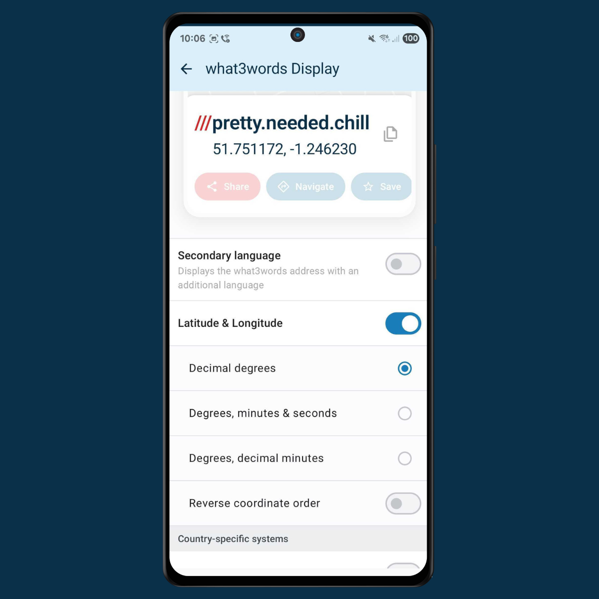 Show more than words: lat/long, British National Grid, and a secondary language on web and in the app