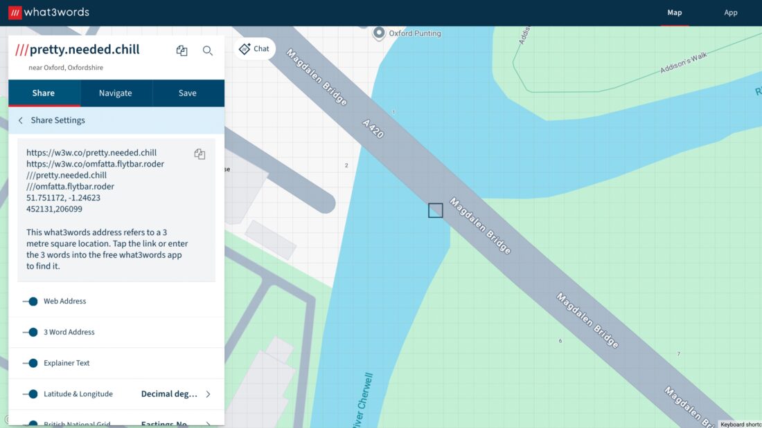 If you work in the UK, you can add British National Grid (BNG) to your what3words display or share content. Many construction, utilities, surveying and monitoring teams rely on BNG in their work.