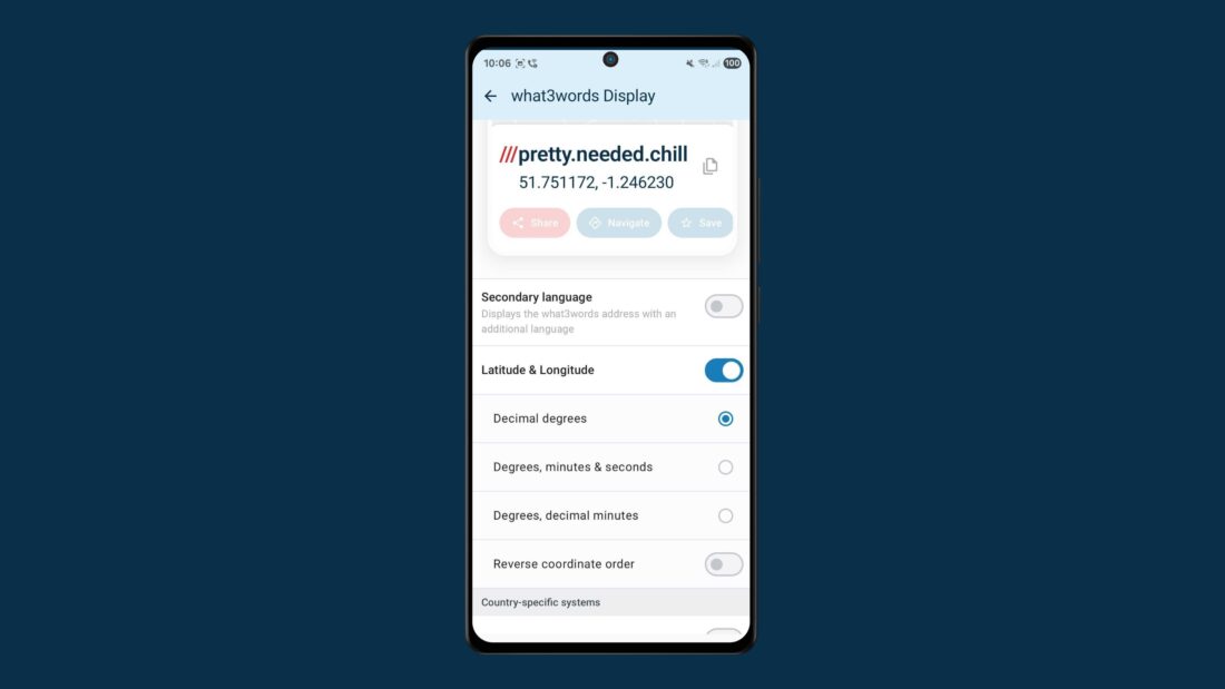 This guide shows how to surface latitude and longitude, British National Grid, and a secondary language alongside a what3words address, on both the what3words map site and the mobile apps.